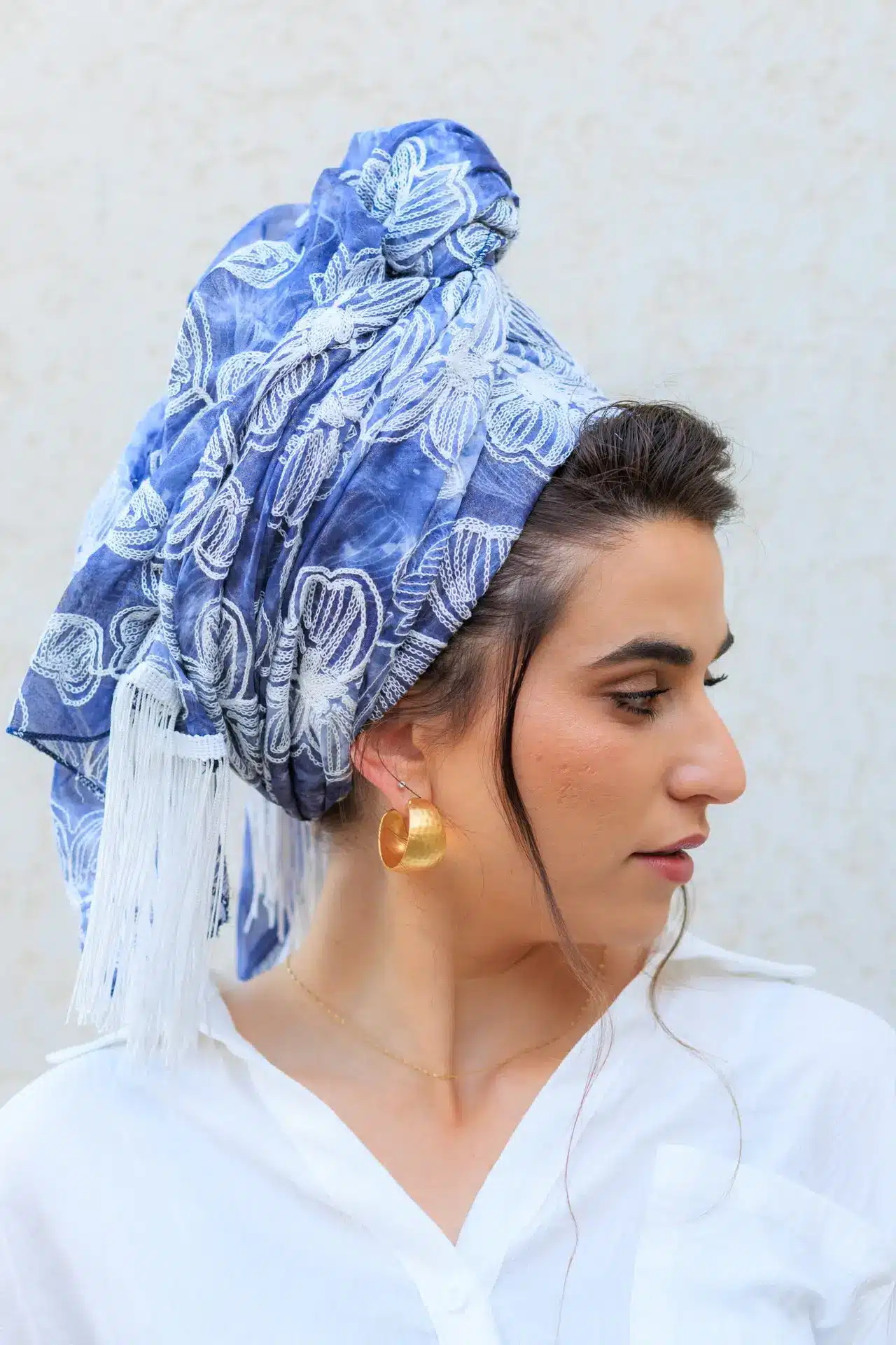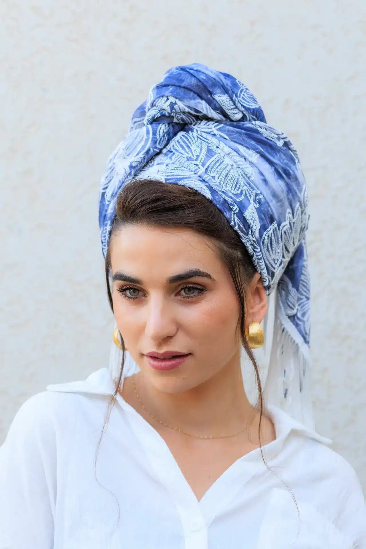 בד רך בצביעה מתחלפת רקמה לבנה רומנטית במיוחד נפח בינוני – מתאים מאוד לקיץ קיים בגוונים פודרה, תכול, ירוק, פוקסיה, אפרסק מרובע 150/150 או מלבן 70/205 שילוב וינטג’ מודרני נעים מאוד לקשירה שומר על מראה חגיגי ונוח