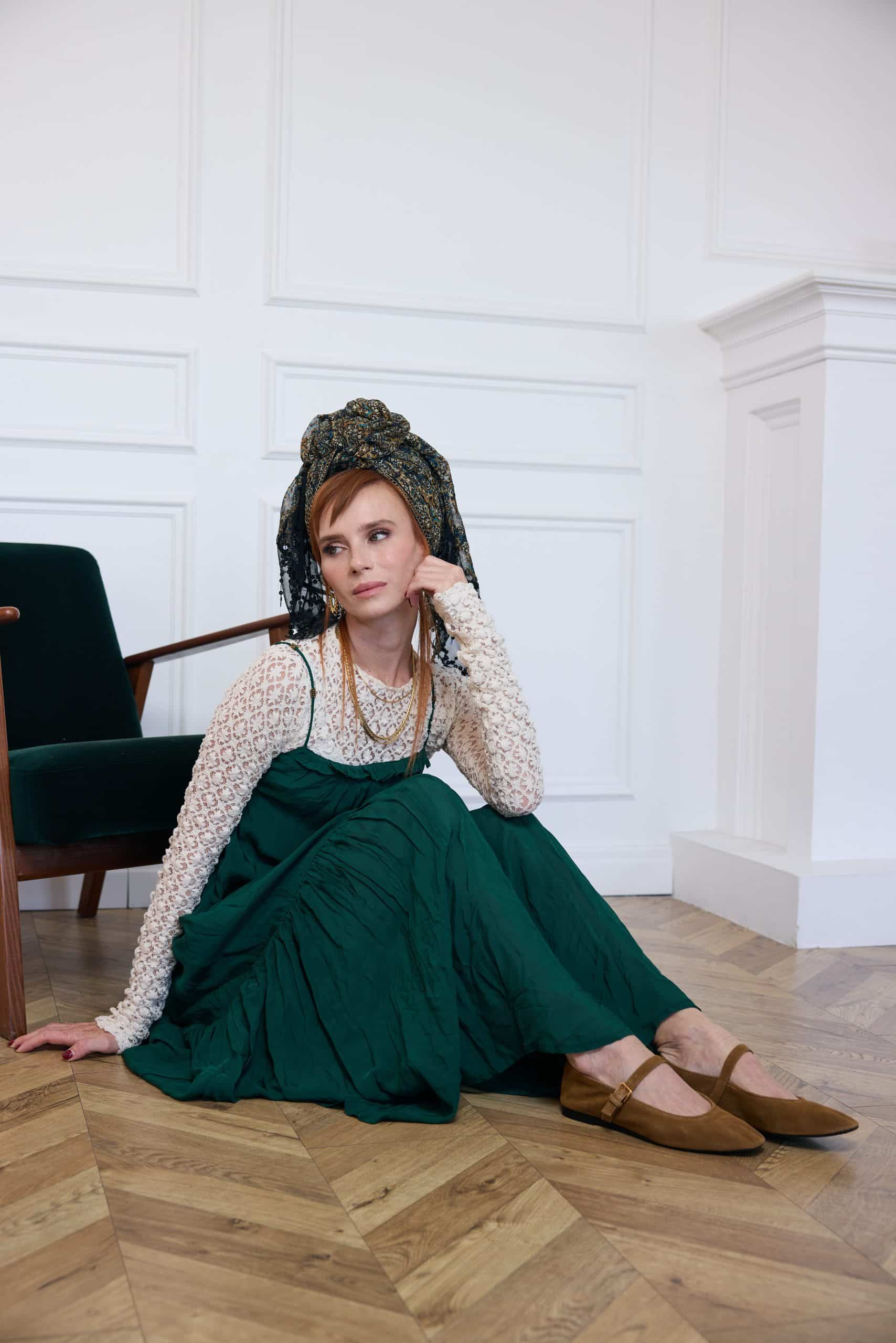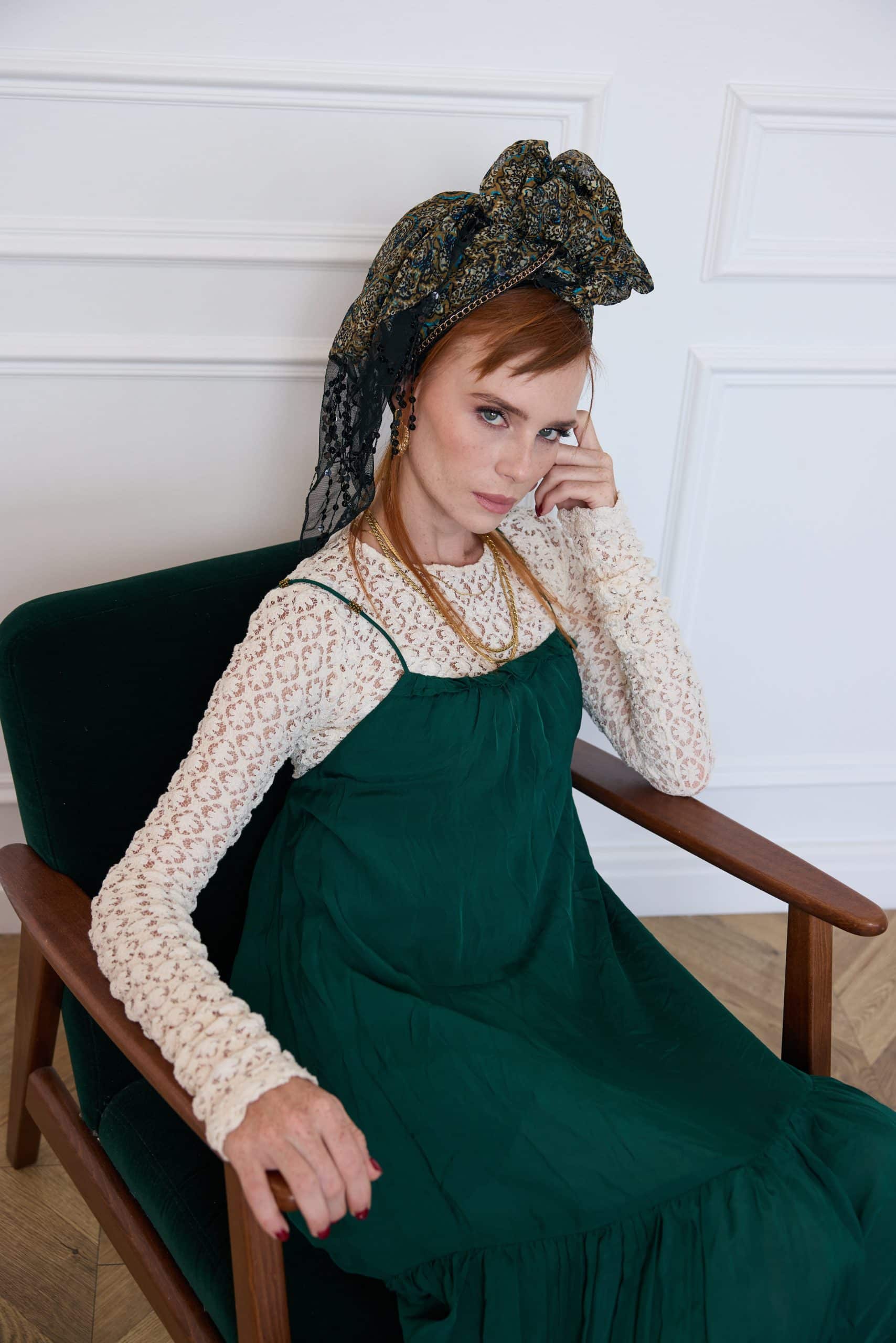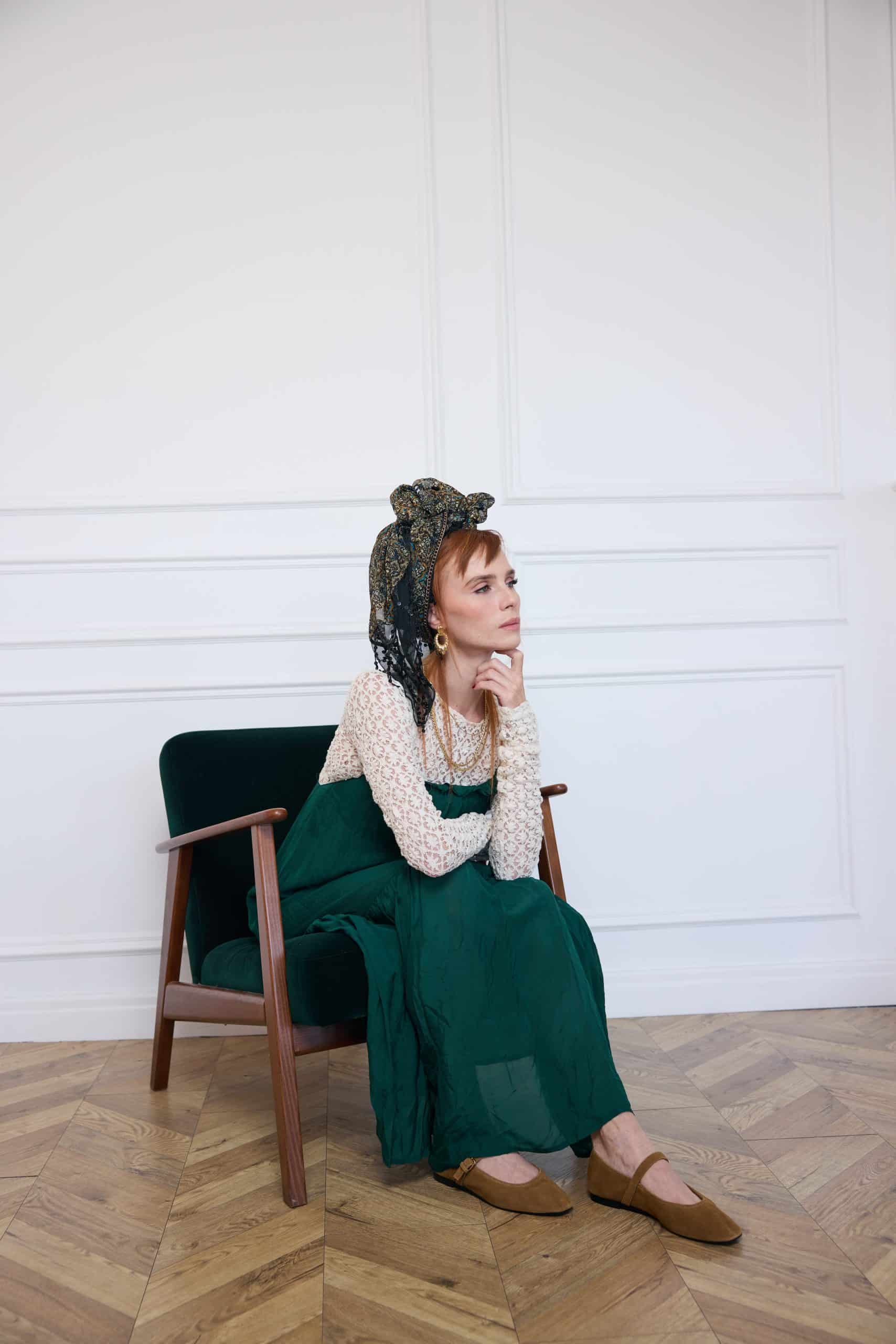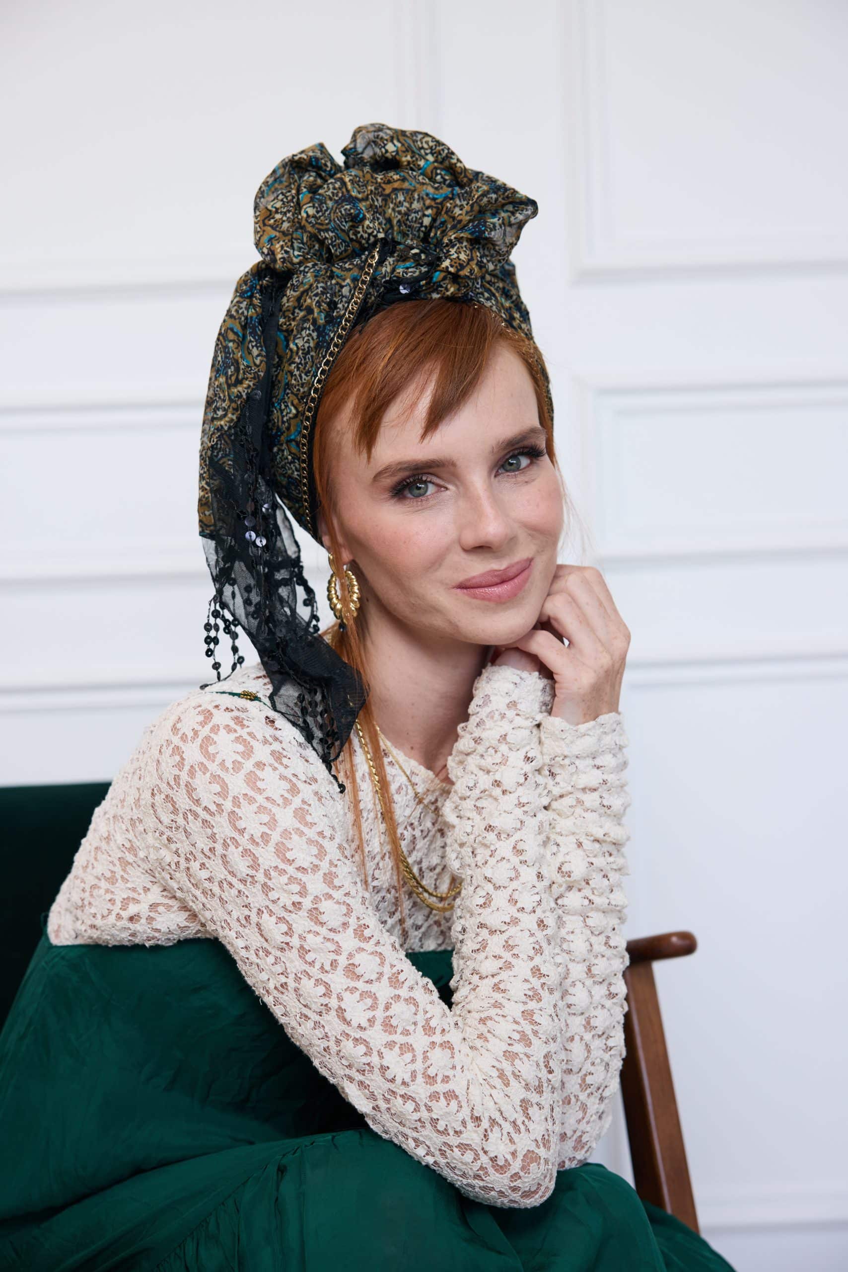 הטבעות קטיפה עדינות על הבד המצויר מונעות ממנו להחליק ותכשיט זהב מהמם מקדימה נותן עוד שדרוג משמעותי ללוק הסופי .