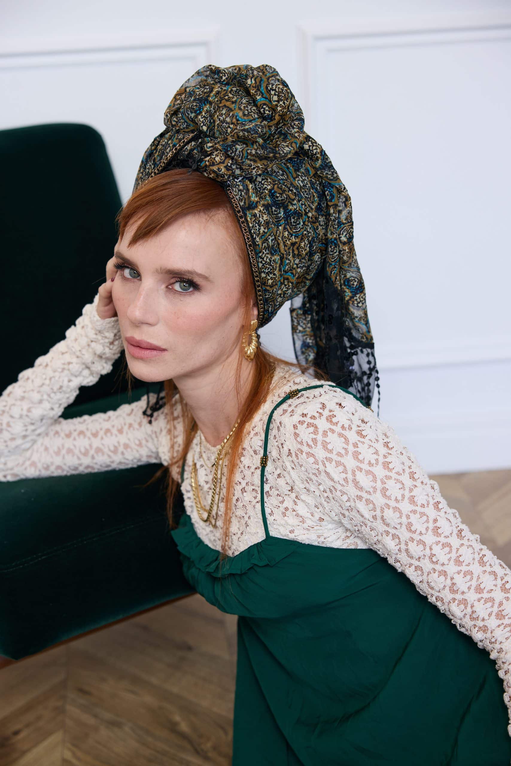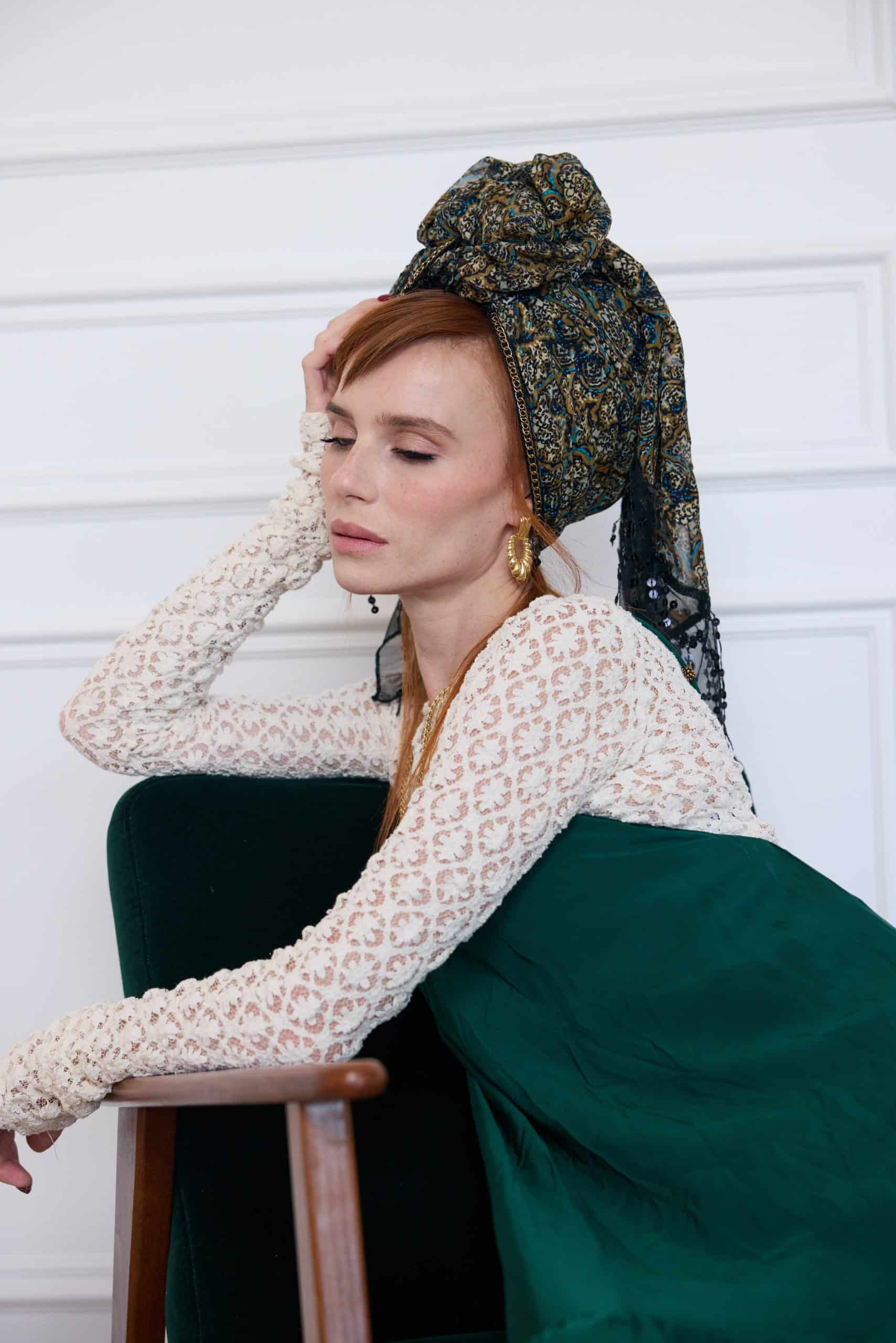 מטפחת בצבעי טורקיז וחום מטריפים שתשדרג לך את הארון וכל לוק שתבחרי לשים איתה.